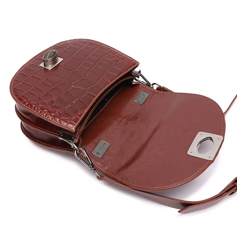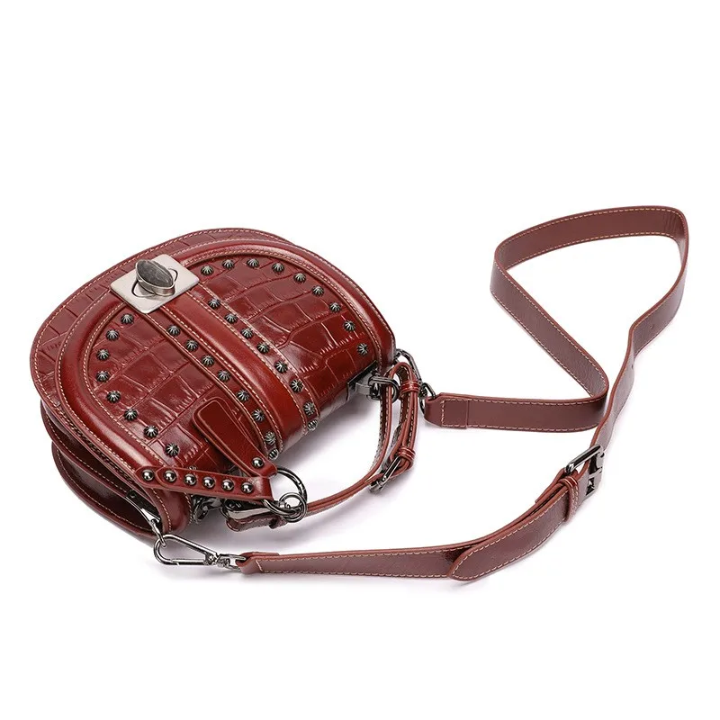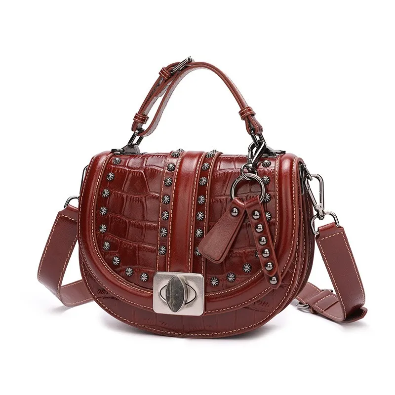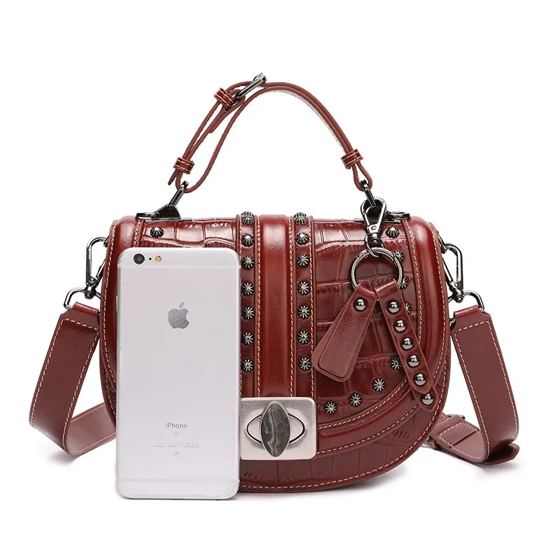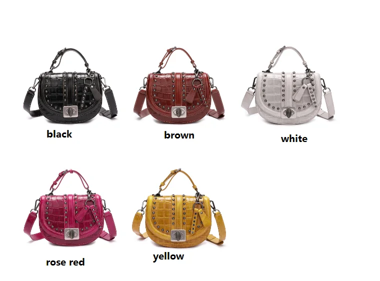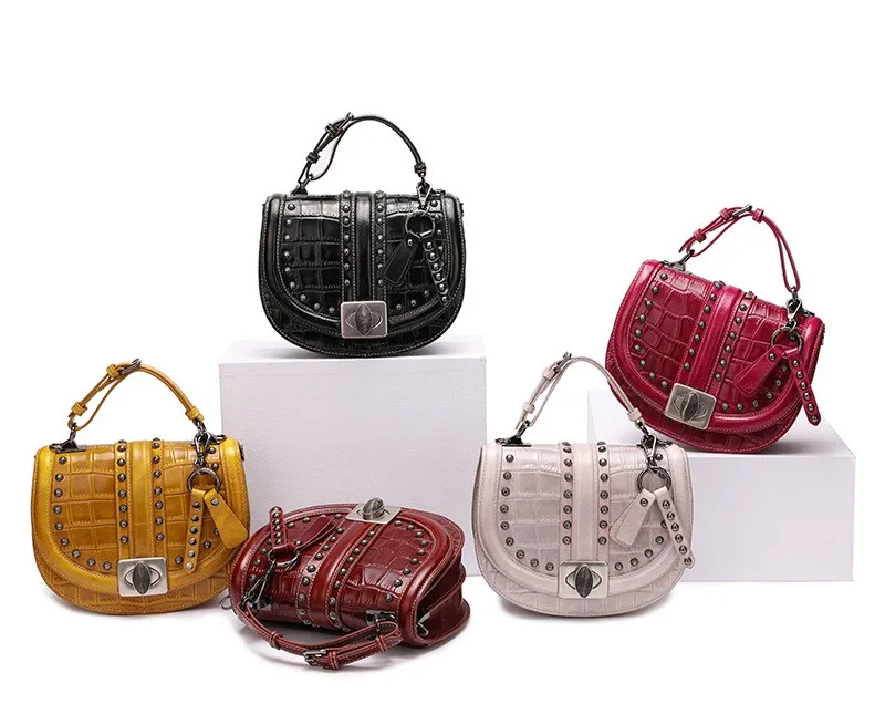 2019 Crocodile Leather Women Bag Top Grain Cow Leather Fashionable Handbag Lady Rivet Shoulder Bags Black