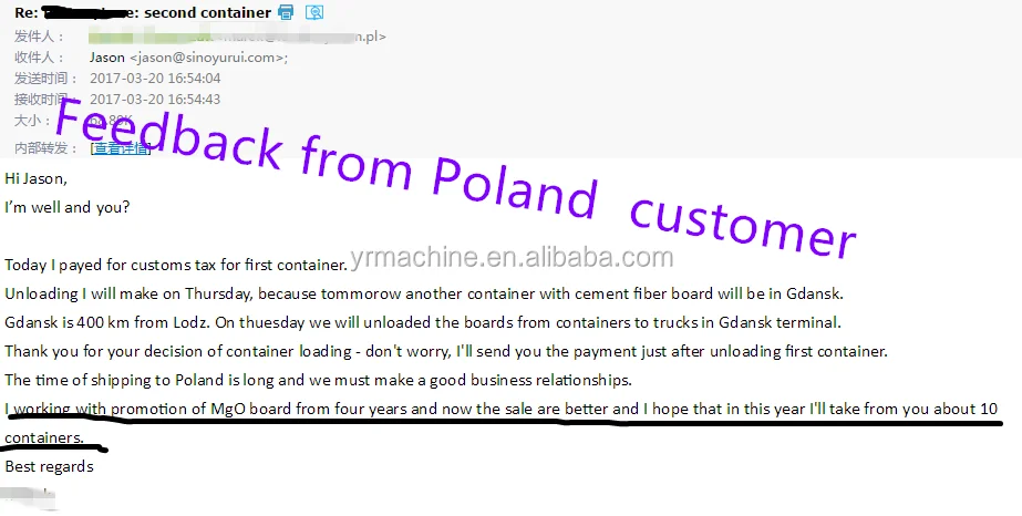 1.No 1 automatic mgo board production machine 2.100% Pure Sulfate/Chloride-Free Enginneer has 18years experience in this field ,and we have developped raw material ,formula based on so many years experience 3.Perfect Quality Control system From raw material supplying, prodcution process, goods inspections ,we have established perfect quality control and tracking system 4.New product development ability Based on so many years production experience , we can help client develop new product according to their market demand