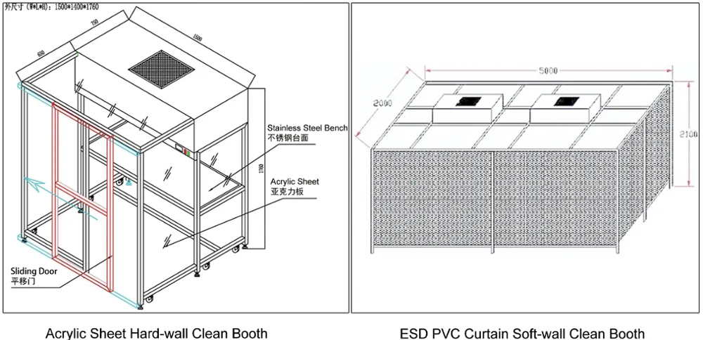4. Compared with ultra-clean clean bench, clean booth has large useful and effective area; while compared with traditional clean room, it has such features as low cost, fast construction and no limits for low floor.