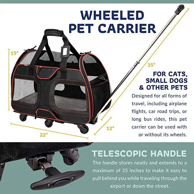 Premium Portable Wheeled Pet Dog Carrier With Wheels &Telescopic Handle