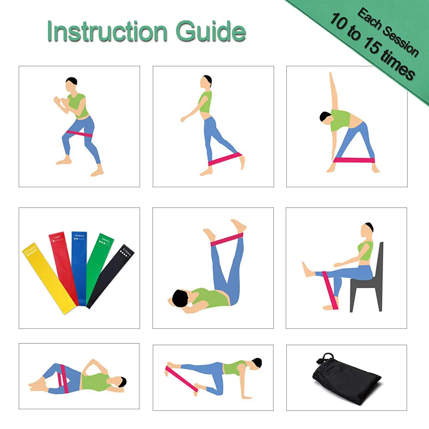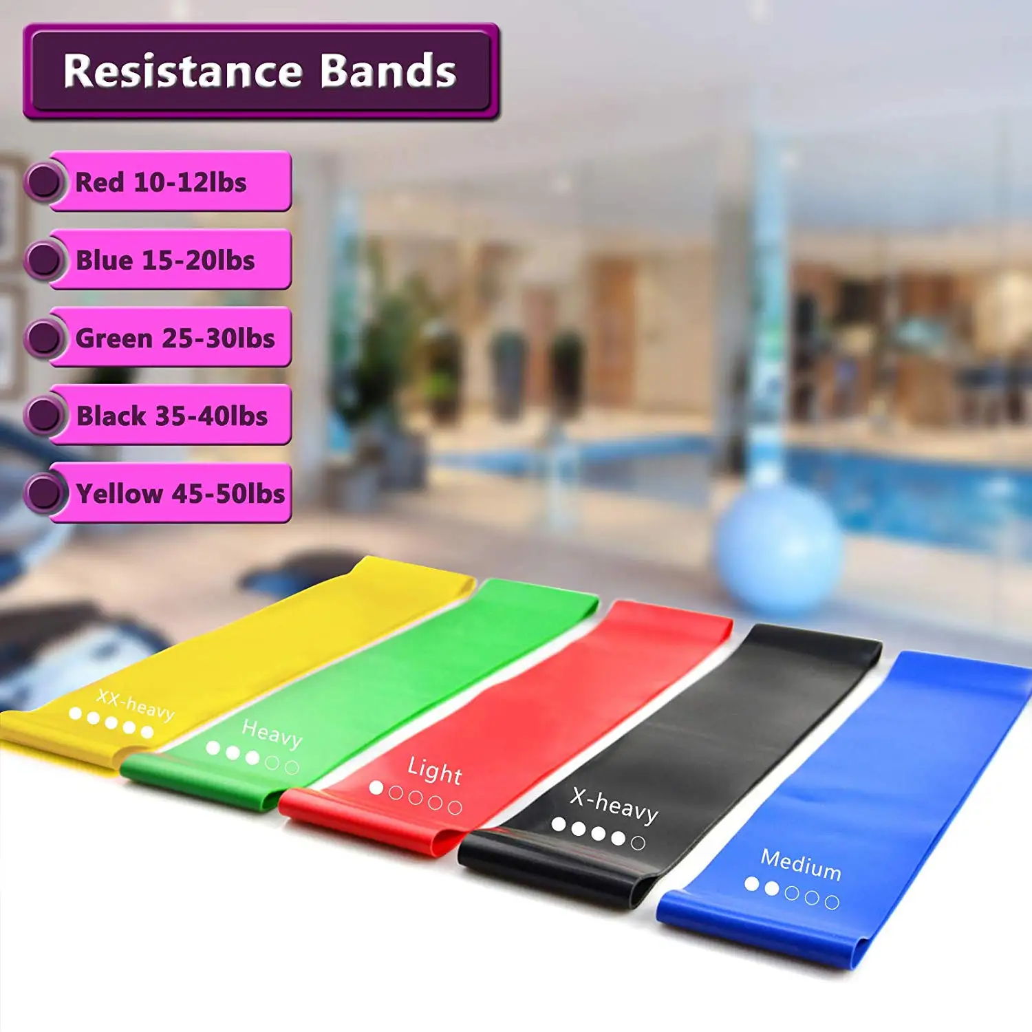Each pack includes | 5pcs different color different resistance resistance bands 1 set core sliding discs 1 pc single drawstring nylon bag | |||||