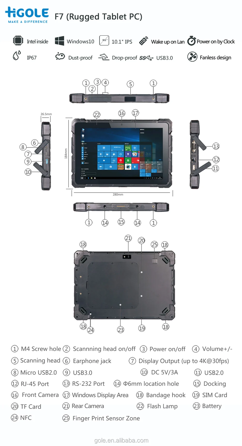 Product Form | Form Factor | IP67 Rugged Tablet PC | ||||||||||