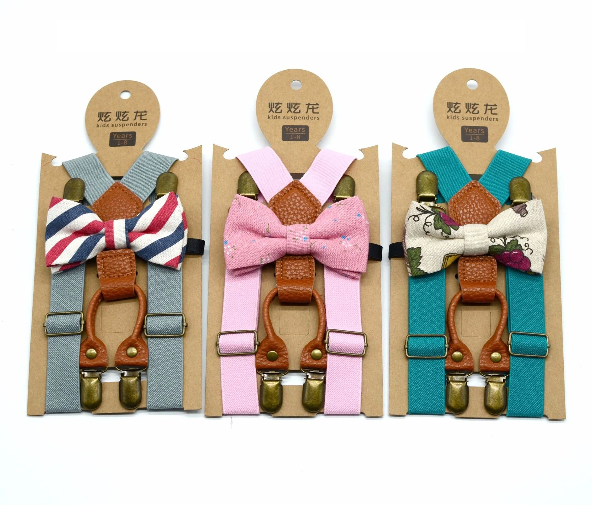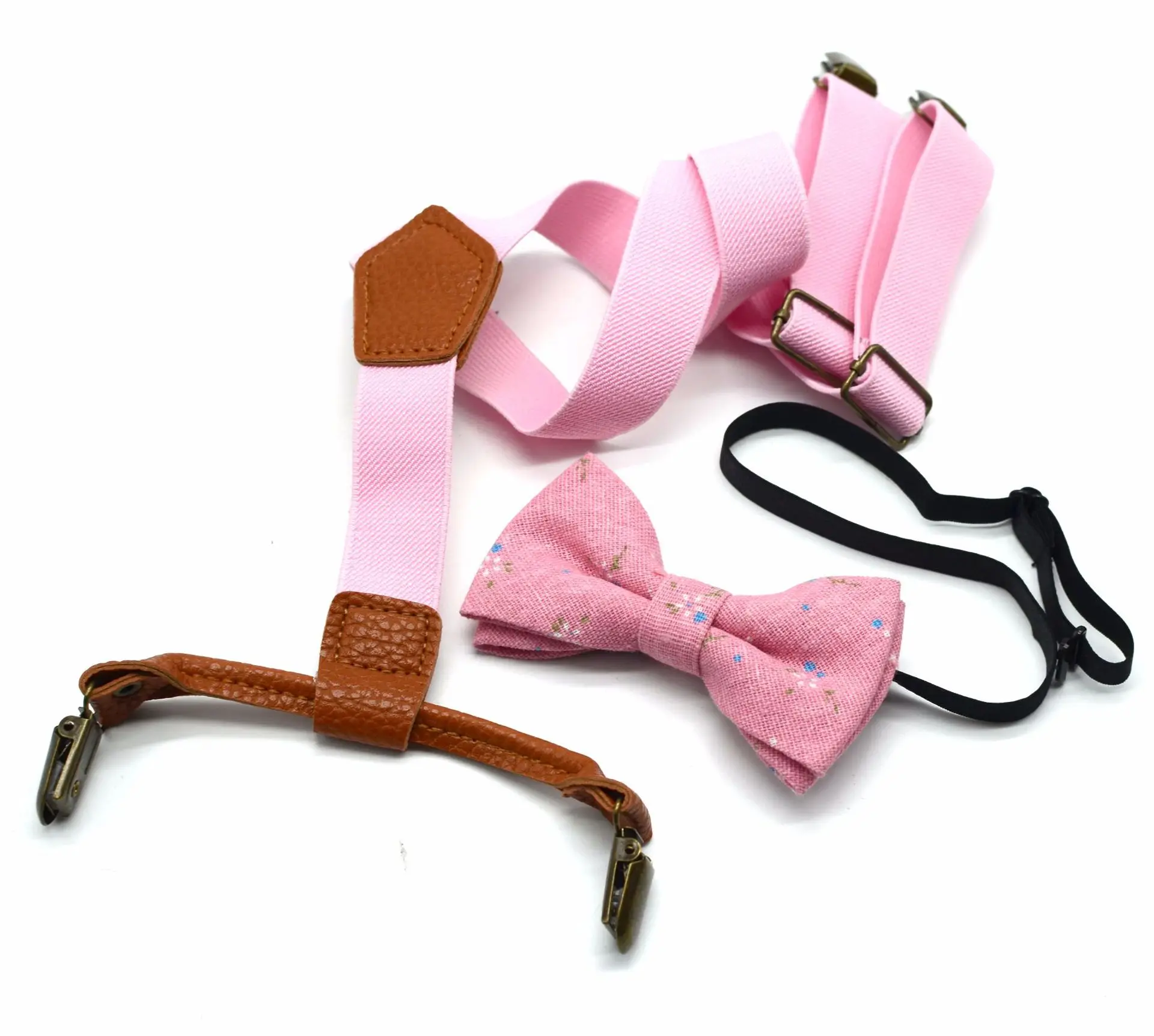Hot Sale Children's Fashion Solid Color Strap 4 Clips+Bow Tie Suit Baby Boys And Girls Suspenders