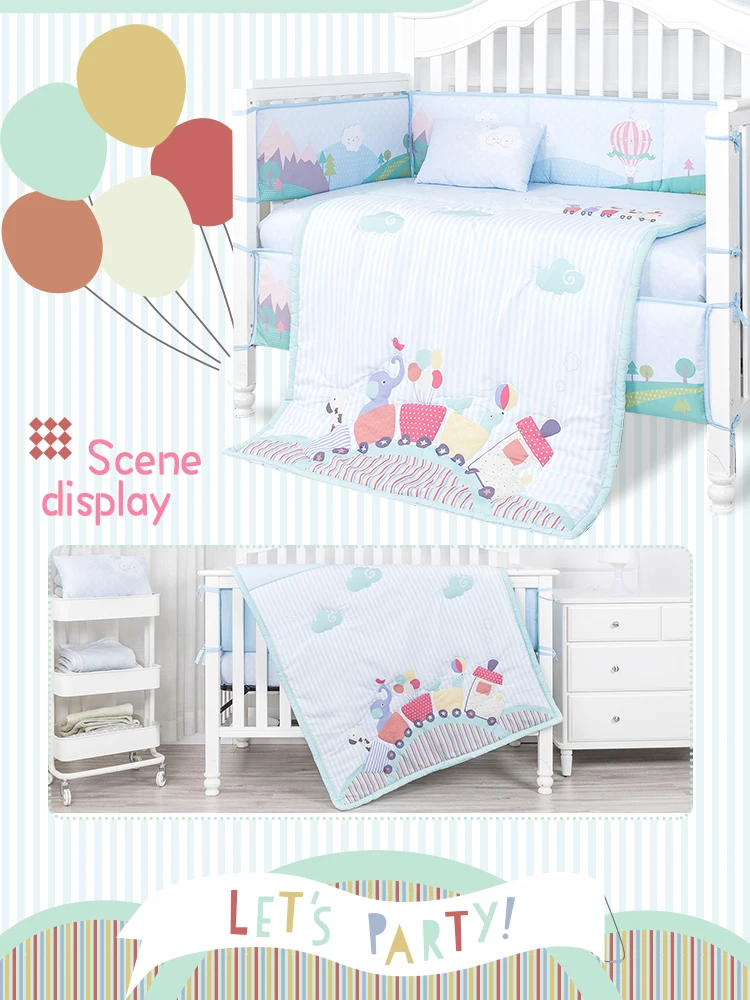 Item Name | Cartoon animal train crib bed set polyester boys baby crib bedding set for 0-3 years old Baby. | |||||||