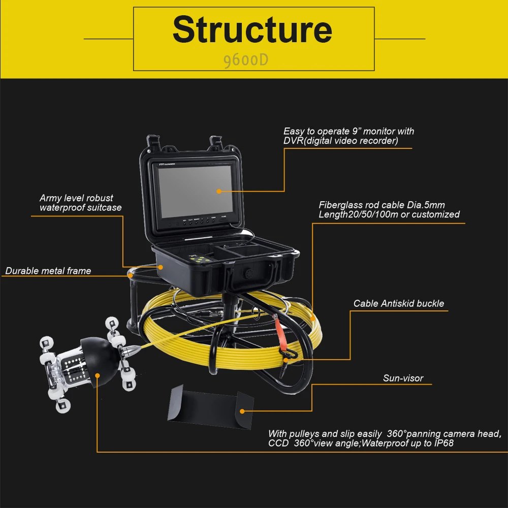 3.The sewer camer viewing angle 360°,HD 1000TVL