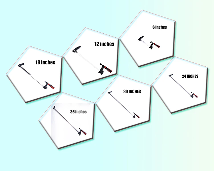 | Size(inch) | N.W(kg) | L*W(mm) | The diameter of screww mandrel(mm) | The length of screww mandrel(mm) | Handle length(mm) | The handle diameter(mm) | Maximum clamp length*depth(mm) | The width of Slide bar |