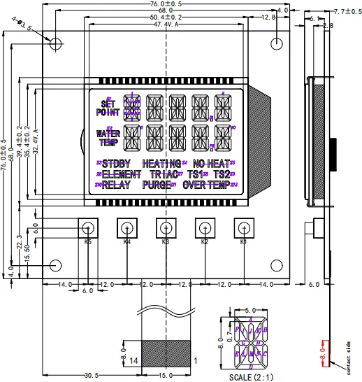 | 11.BKL A+ | Backlight anode(5.0V) | 12.BKL KR- | Backlight cathode(Red) |