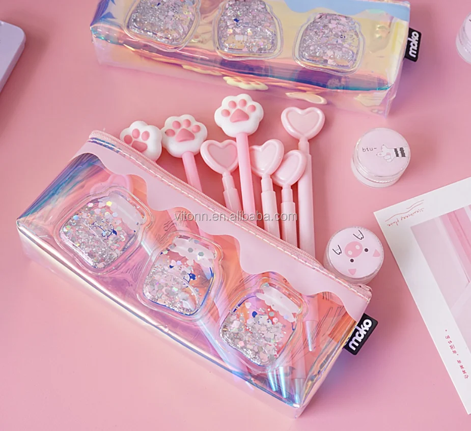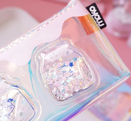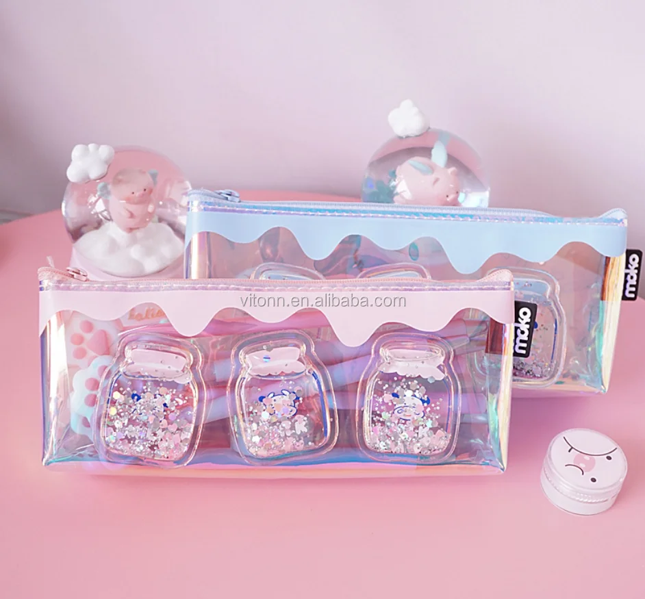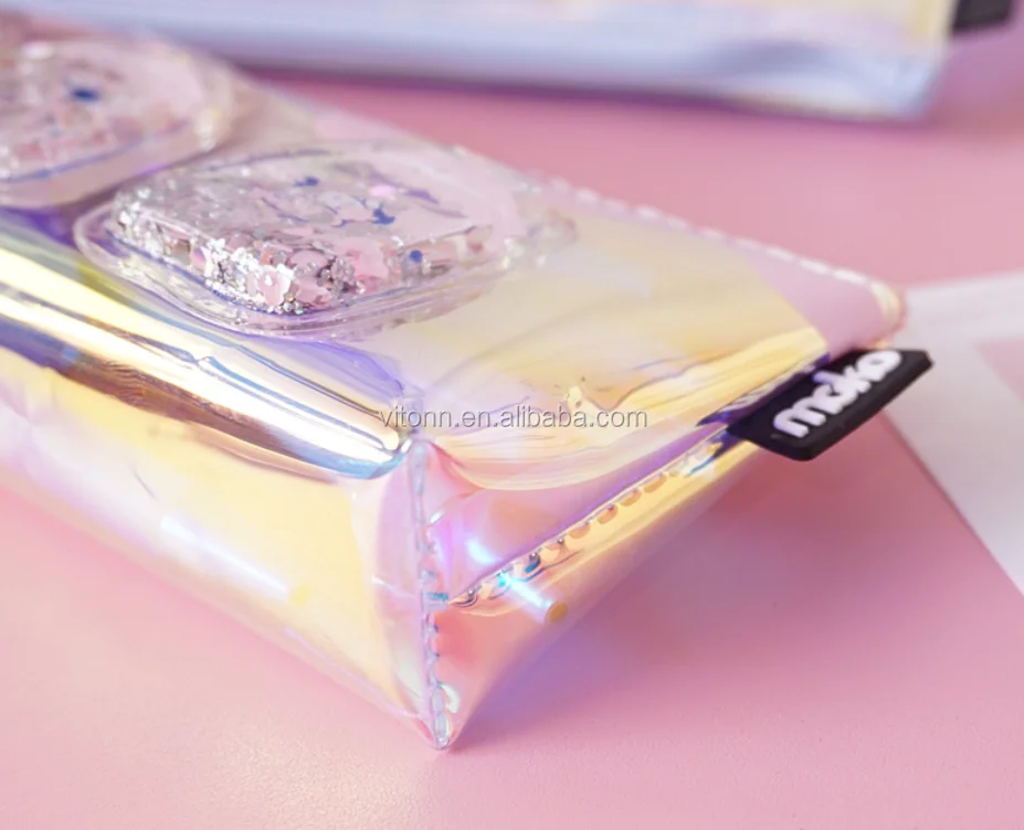 2019 designer transparent pencil case glitter bags, clear pvc sequin pencil case zipper custom