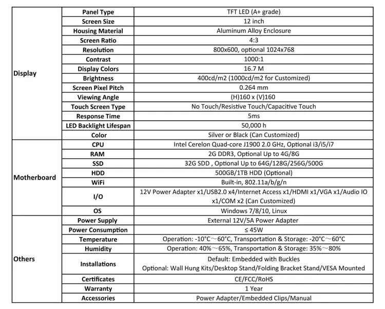* Others: explosion-proof, Anti glare, dust-proof, waterproof, electromagnetic screen