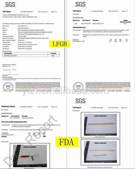 Certification | Related certificates for 8 inch bamboo sticks are available,Such,LFGB,Fumigation Certificate and so on.