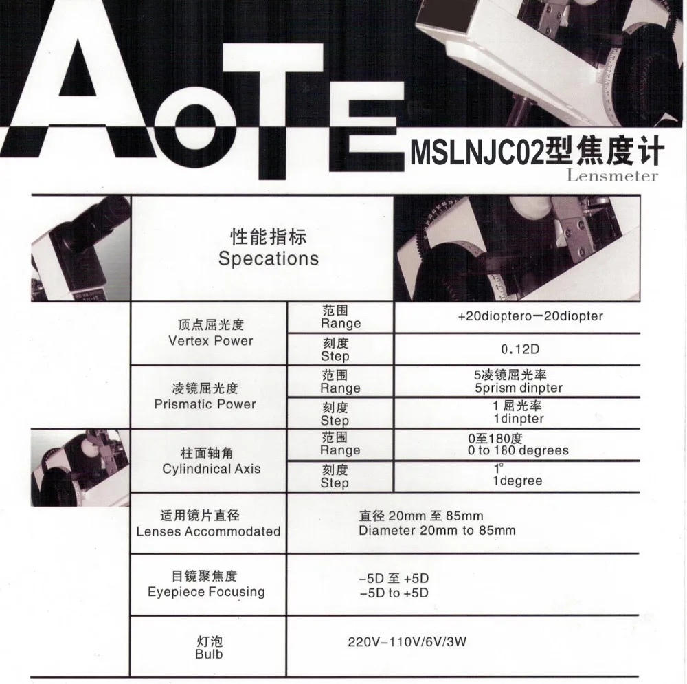 Astigmatism axis angle of cylindrical lens | 0~180° Minimum scale value 1° | |