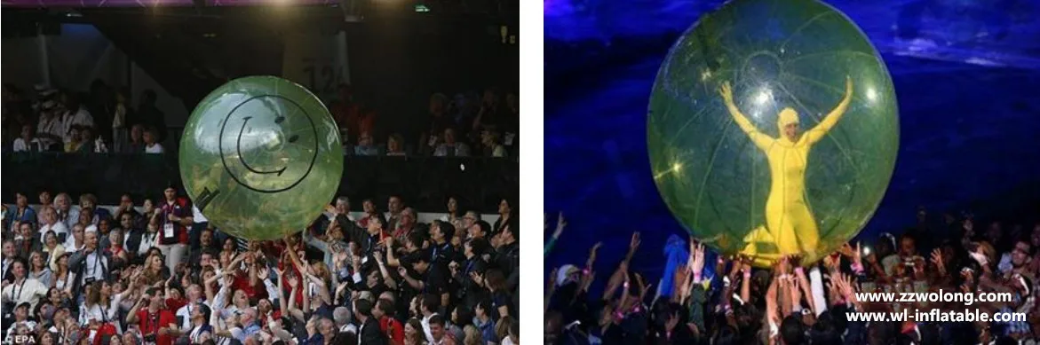 The inflatable transparent ball produced by Zhengzhou Wolong amusement equipment company shown in London Olympic ceremony in 2012.