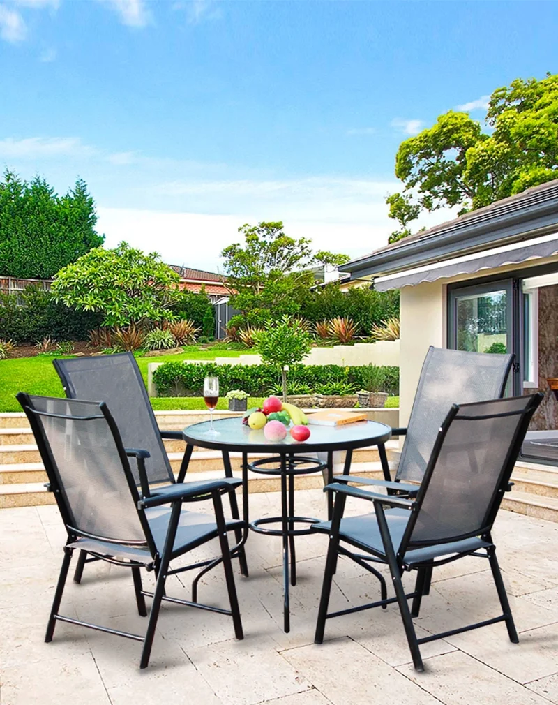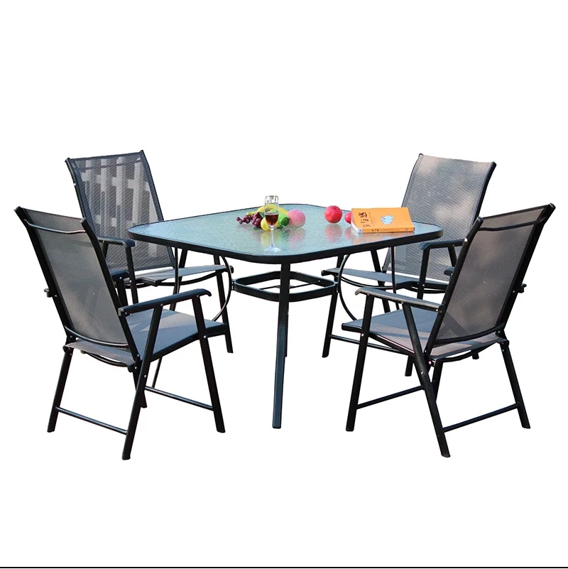 outdoor garden furniture sets dining folding chair square table 4seater table garden patio folding table 5pcs garden set | |