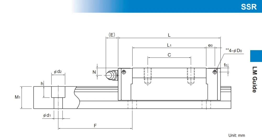 SSR-XV:This type has the same cross-sectional shape as SSR-XW but has a shorter overall LM block length (L).
