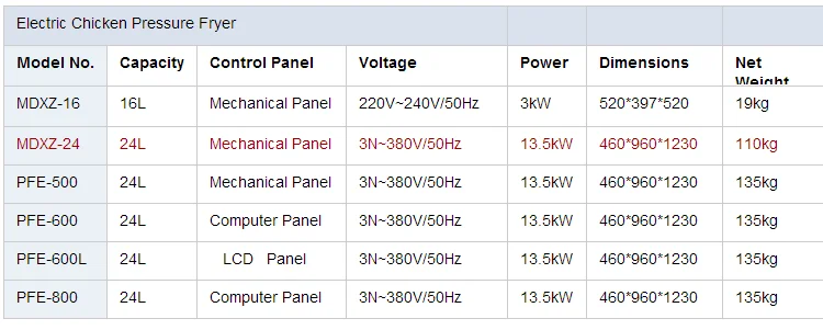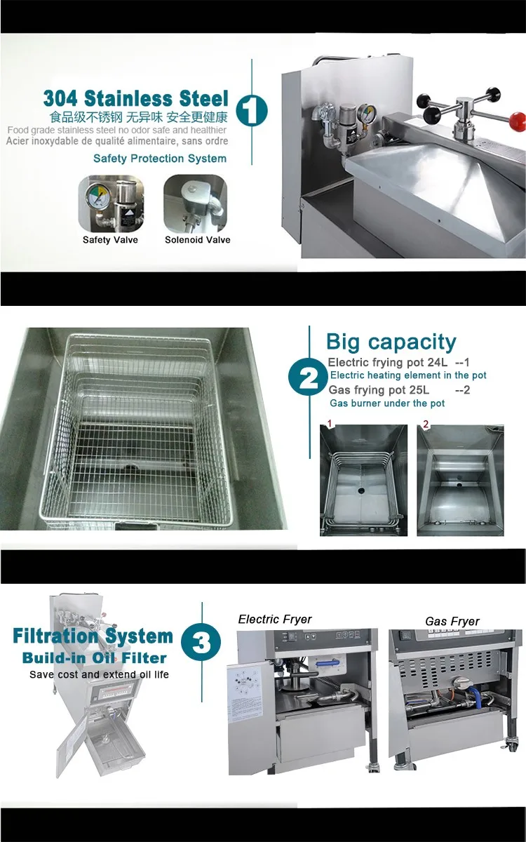 Professional CE Certificate freidora Kfc Equipments Electric /Gas Industrial High Pressure Fryer
