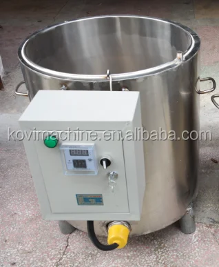 wax-melting pot is composed of three layers stainless steel plate, heat conduction layer and insulation layer plate (tank), containing wax oil switch and put the heat conduction oil mouth, can according to user requirements assembly 380 v or 220 v electrical wire.