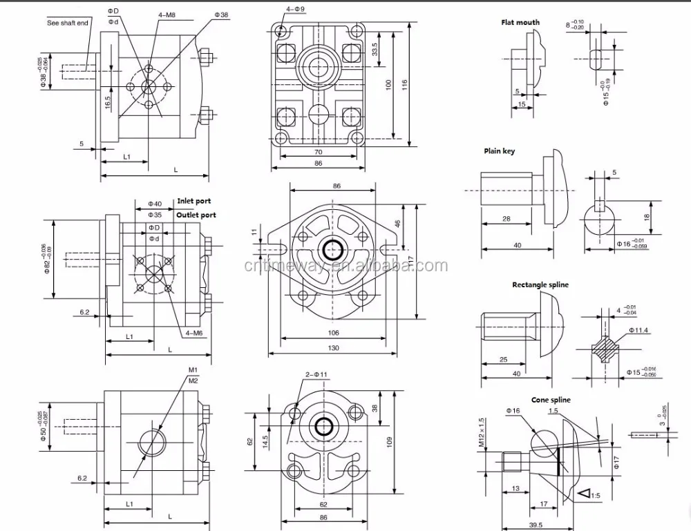 3.Flange Installation Mode: SAE Standard Connection Mode of Input Axis: Plain Key