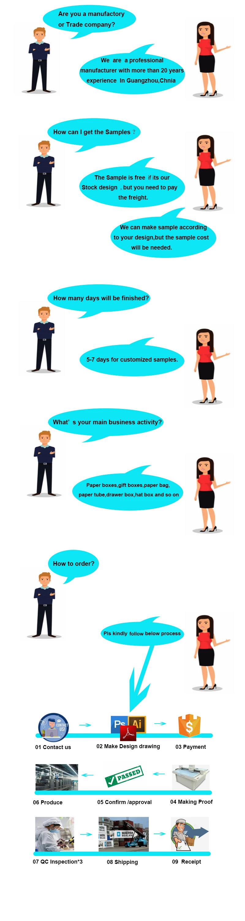 Sample lead time | 3 days for blank sample, within 7 days for printed sample. | |||||||