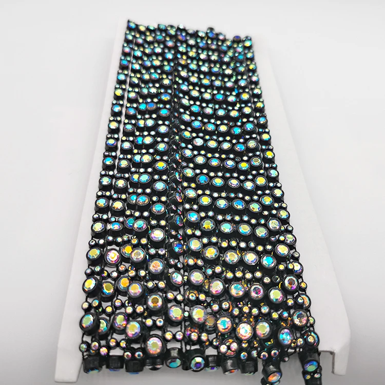 Crystal rhinestone trim is a fashionable Garment accessories rhinestone chain trim,also referred to as crystal rhinestone chain ,rhinestone roll ,rhinestone banding,or rhinestone wrap ribbon .
