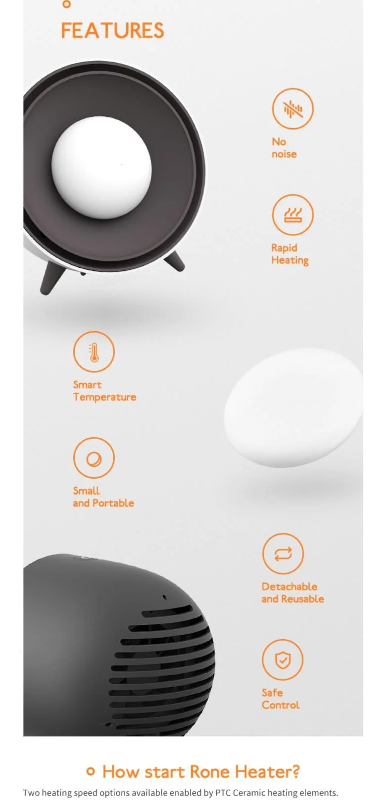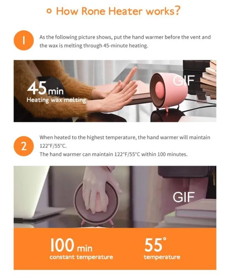 Mini Heater + Detachable Hand Warmer Stay Warm wih Rone Anytme AnywhenRone , is not just a mini heater but s a detachable hand warmer Heated by the heater ,the hand warmer warms up in a short tme This is an unted revolutionary newheating method.
