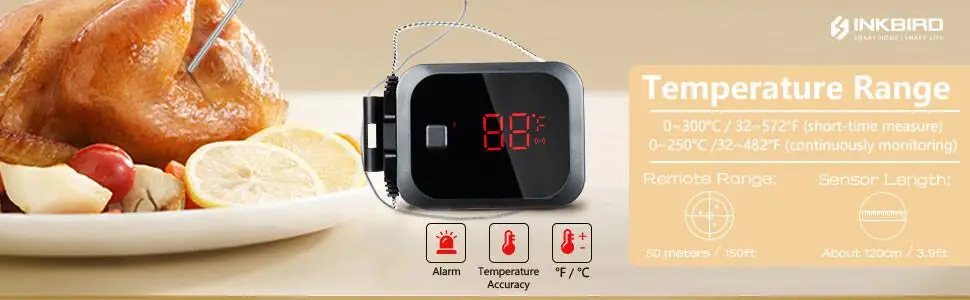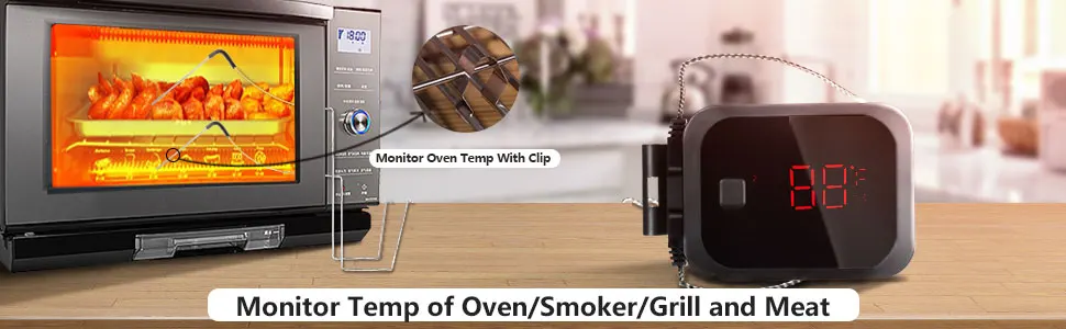 【Temperature Alarm】Will alarm when temperature reaches, power off or lose link. It is not necessary to worry about burning out food,can spend more time with your family and friends instead of hovering over a hot oven/grill.