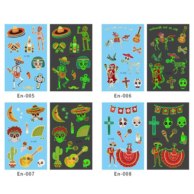 Shantou Water Transfer Temporary Fluorescence & Luminous Body Art Tattoo Sticker For Halloween Party