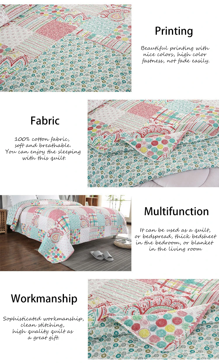 Description | Pastoral Style Printed Patchwork-like Cotton Summer Quilt | ||||