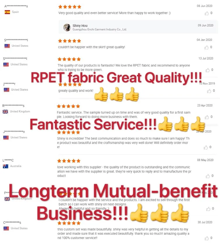 The recycled fabrics for sports wear can be printed with sublimation printing. If you need custom prints on the clothings, kindly >>>contact us<<<.