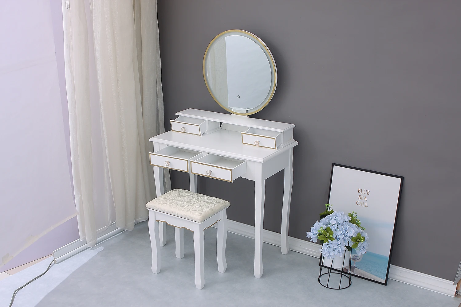 7. Easy to install1. With a light dressing table, and the light is white