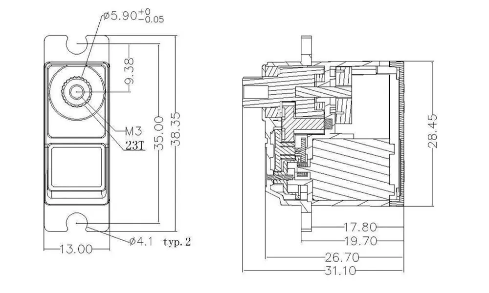 7 | Gear Type | 4metal gear + 1 plastic gear | ||