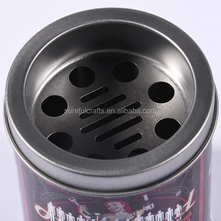 Custom Design Hot Sale Round Tin Metal Portable Ashtray Outdoor Black Car Ashtray