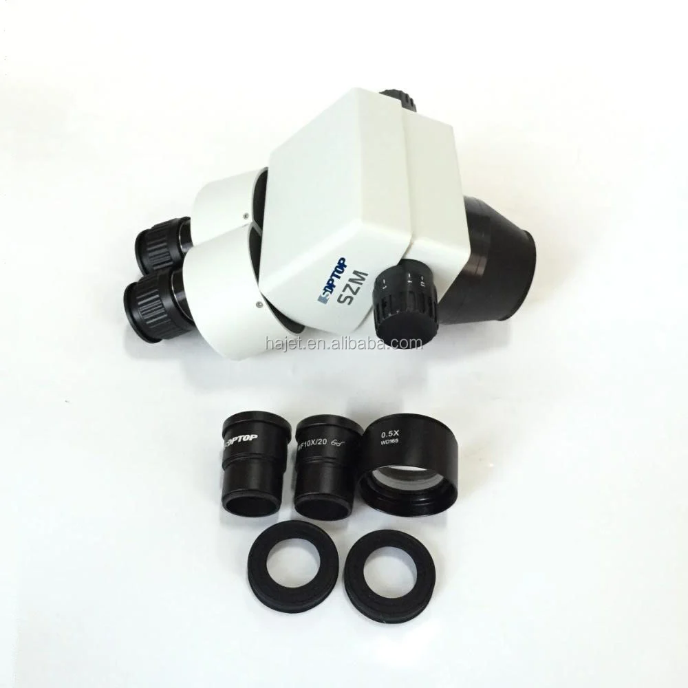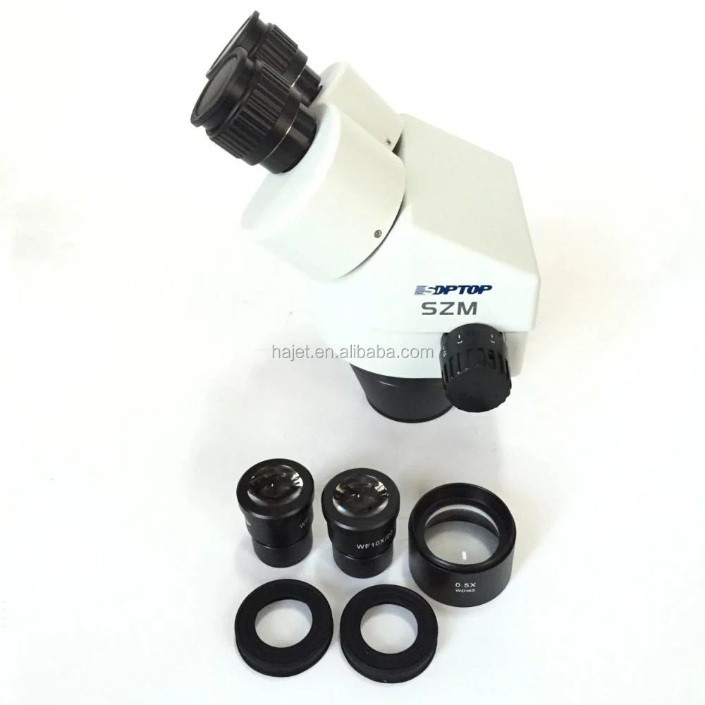 Includes stereo zoom microscope boddy, 0.5 objective lens. Other magnifications and working distances available. Magnification Range: 7X to 45X. Working distance: 6.4" (160mm)