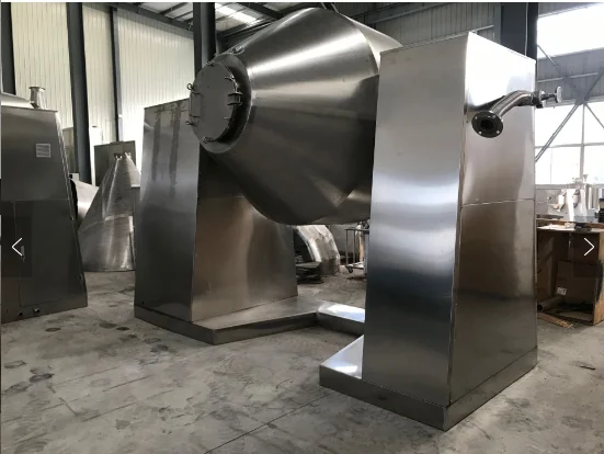 W series mixer is a new type, high efficiency, fine container rotary, stirring mixing equipment.Used for mixing all kinds of powdery, granular and clotted materials evenly, with high mixing uniformity, it can also achieve better mixing effect for the ingredients with little addition.The machine USES mechanical seal, powder will not leak, bearing life long.This machine has high mixing efficiency, high working efficiency, low labor intensity and convenient operation.This machine is composed of double cone barrel, mechanical seal, frame, reducer drive, mixing blade and so on.A powder or granular material is added to a biconical container, where it is subjected to a complex collision as the container rotates.The stirring blades tell the rotation to achieve even mixing.