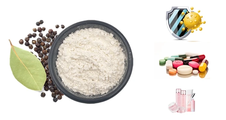 In recent years, with the research in cosmetics field, it has been found that Piperine can promote skin penetration. It is responsible for enhancing effective ingredients of cosmetics to quickly penetrate into skin. Therefore, it can be added into cosmetics as cosmotic agent. In addition, Piperine can be used as fragrance of perfume, because of its special smell.