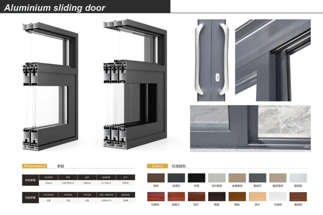 Profile | A. Aluminum alloy, 6063-T5, can be thermal break B. Wall thickness: 1.2, 1.4, 1.6, 2.0mm, can be customized C. Surface treatment: anodized, electrophoresis, powder coated, color can be customized | ||||||