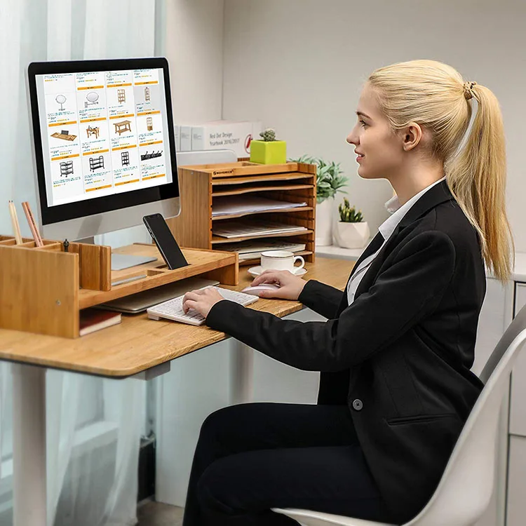 Description | Adjustable bamboo desktop file tray |