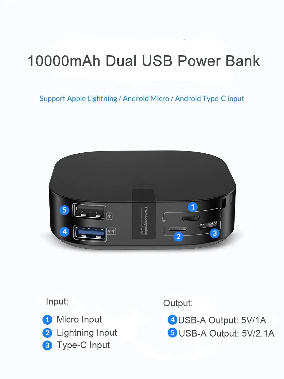 Input | Micro/Lightning/TYPE-C: 5V/2A |