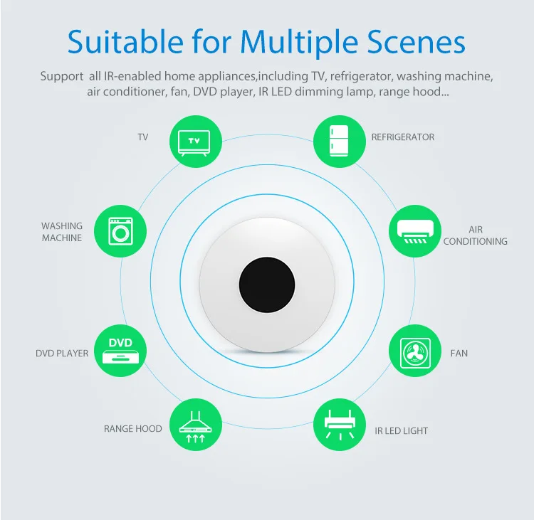 1.Universal IR control for Aircon, TV , DVD player ,audio ect . 2.smart mobile app control with 3G/4G/wifi from anywhere .