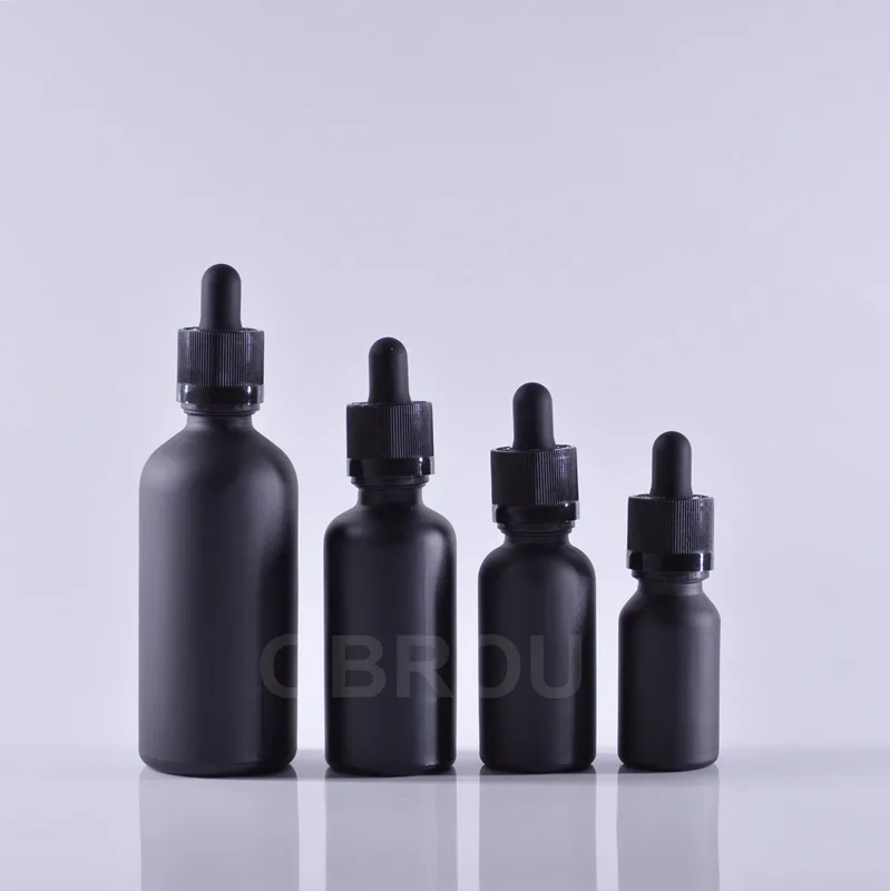 wholesale 5ml 10ml 15ml 20ml 30ml 50ml 60ml 100ml 120ml matte black dropper e liquid bottles essential oil glass dropper bottle