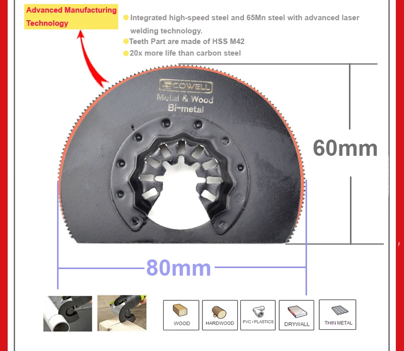 Products Material | Bi-metal,Sk5,65Mn,Carbide alloy | ||||