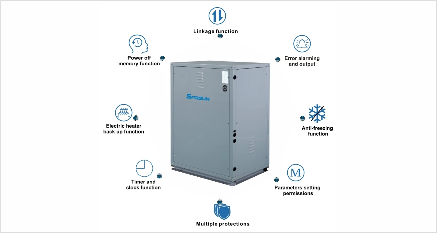 As one of the Top 10 brand in China's heat pump industry, SPRSUN has been in the heat pump industry for 20 years. With a strong R&D center and 6 production lines, we are specialized in producing air to water heat pumps ,high temp heat pump, EVI low temp heat pump , EVI inverter heat pump , DC inverter heat pump and swimming pool heat pump , getherrmal ground source heat pump for the HVAC market, providing home heating and cooling system . Our products are welcome all over the world, such as Germany, Sweden, Serbia, Turkey, Czech, Russia, Vietnam, Australia, South Africa and so on.