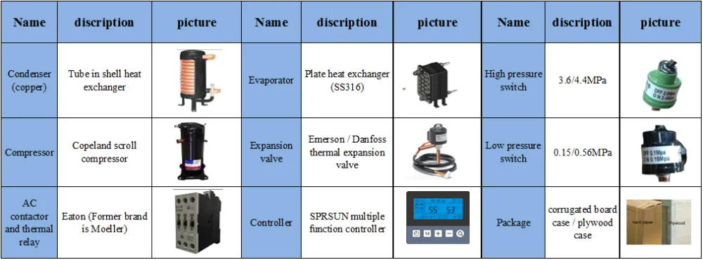 Copeland scroll compressor, Danfoss electronic expansion valve, Eaton AC contactor and thermal relay as well as other brand components of the heat pump guarantee high product quality and a long lifespan. All of our screws and clips (both external and internal) are stainless steel. The cabinet we are using is made of GALVANIZED STEEL, making the product more rust resistant and durable.