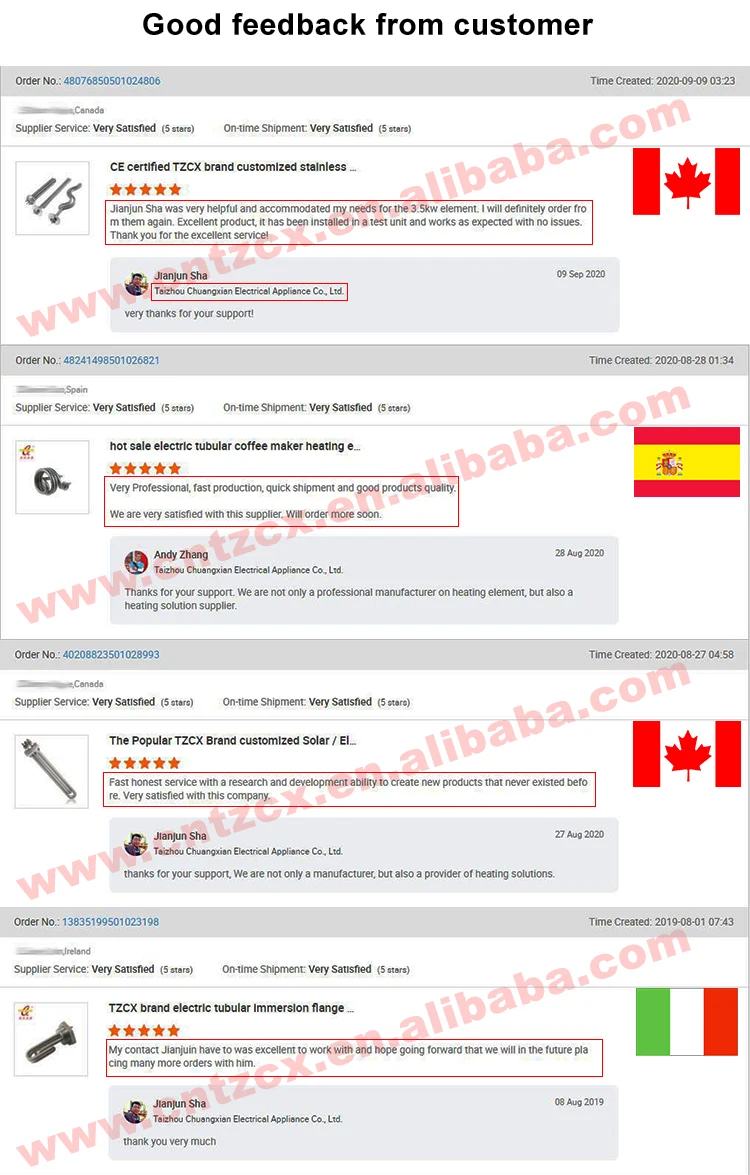 A: We are direct manufacturer, so we can completely control the quality and delivery time. And our price must be more cheaper on the same quality. 100% test before packaging according to the CE regulation. Our own brand TZCX is usually nominated from the final user. We are not only a professional manufacturer of heating elements, but also an excellent provider of heating solutions.