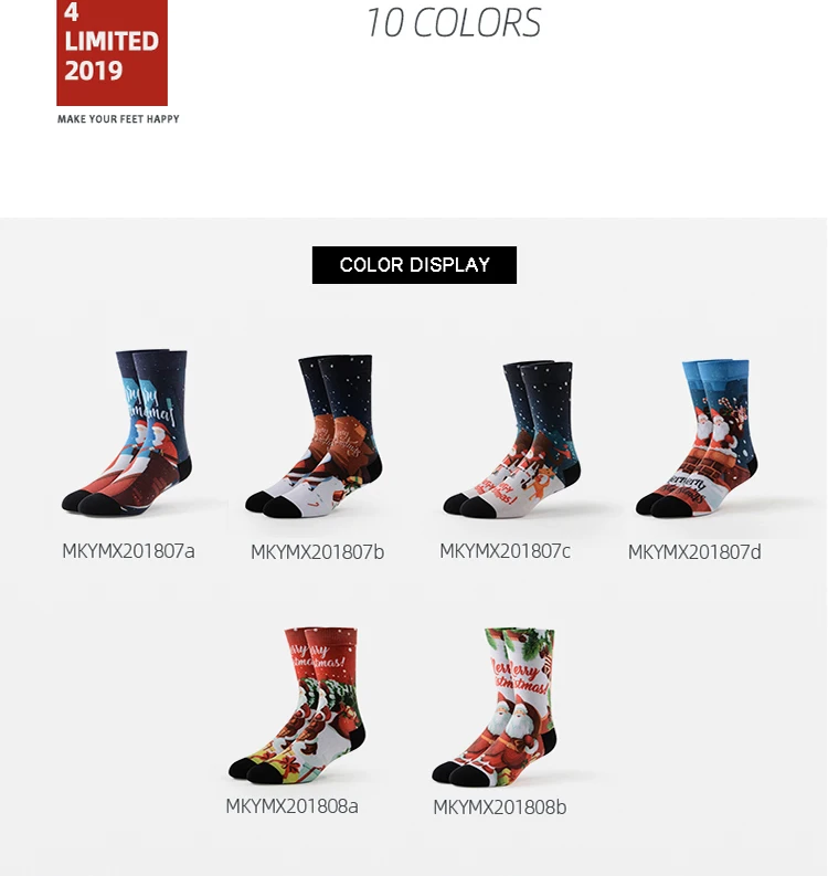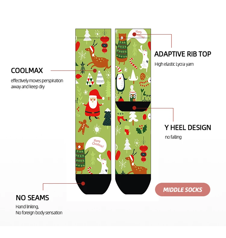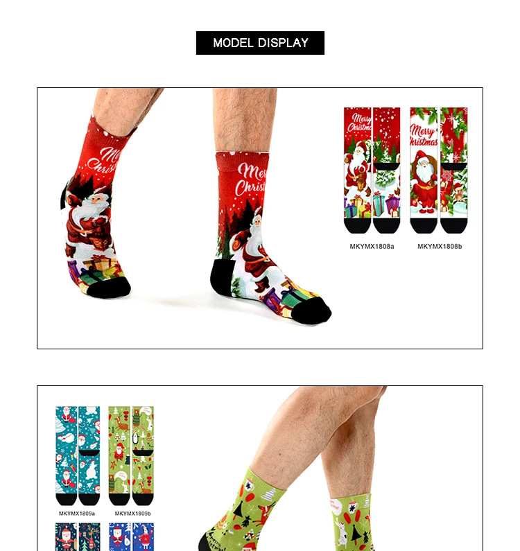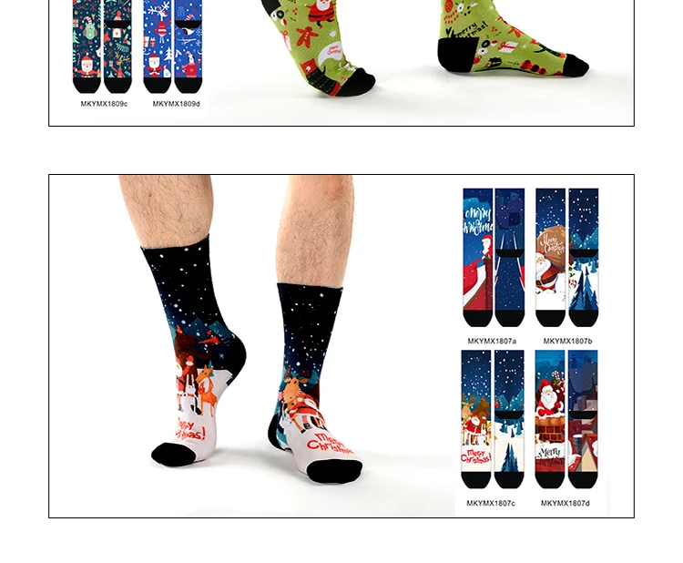 MEIKAN Christmas Series Fashion Pattern Men Sox Custom Coolmax Material Unisex Plain Knit Funny Print Crew Socks