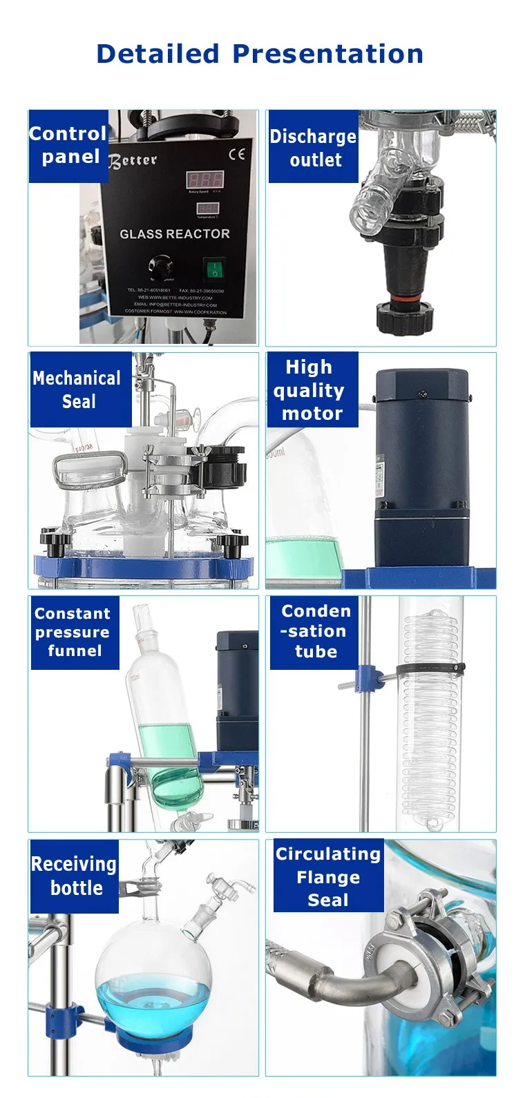 Full set of glass part is produced by G3.3 borosilicate glass, owns excellent chemical and physical properties.
