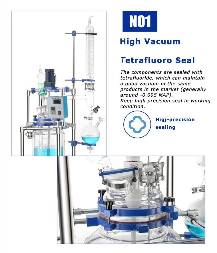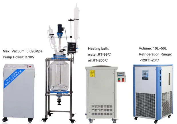 Loading capacity of glass reactor generally is 1kg, use hot water and oil to do negative pressure heating.