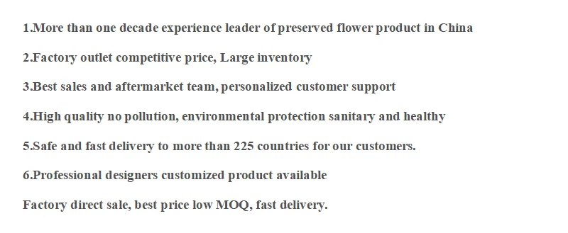 Preserved flower color is rich, wide-range in application, save time, at least 3 years, use for floral design, home decoration, celebration activities, the ideal flowers deep processing products.
