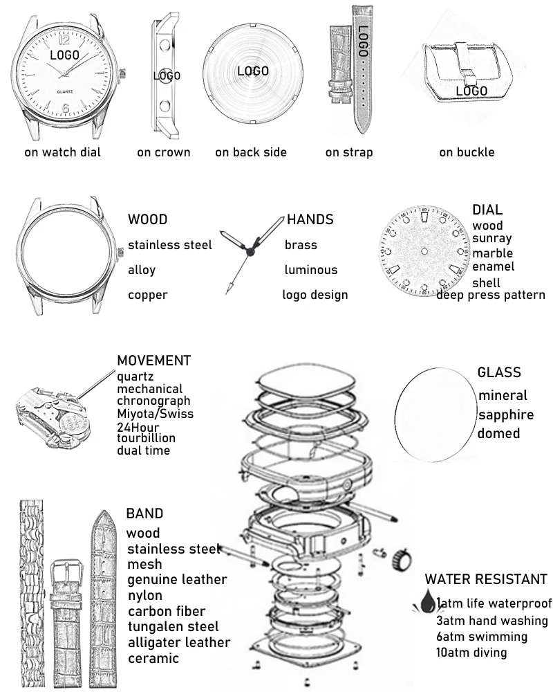 Stainless steel watches: 300-500pcs per model for custom logo | |