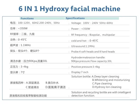 6 in 1 hydrogen oxygen bubble function machine skin care beauty spa salon equipment