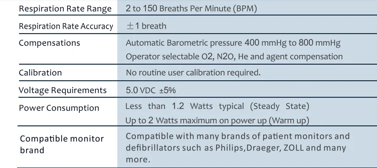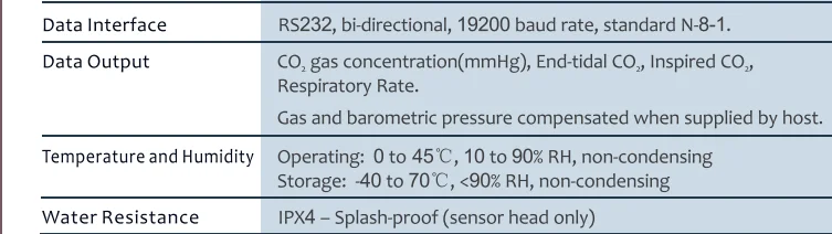 Regarding to the EtCO2 sensor, it support three communication protocol, Respironics/Masimo/CPT. We provide Lemo-8/DB9 sockets, but we can also customize it according to your requirements. As a manufacturer, we will provide you best tech-support and service.